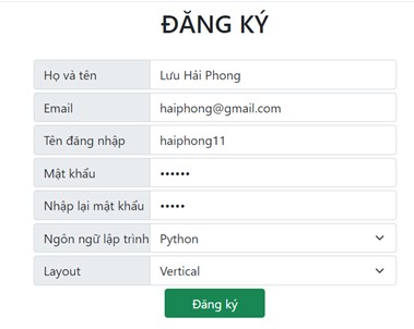 Sau khi đăn ký thành công, web sẽ chuyển hướng đến trang đăng nhập, hoặc truy cập http://hpcode.pro/login/ rồi điền thông tin (tên đăng nhập và mật khẩu) vào các ô tương ứng trong form để thực hiện đăng nhập